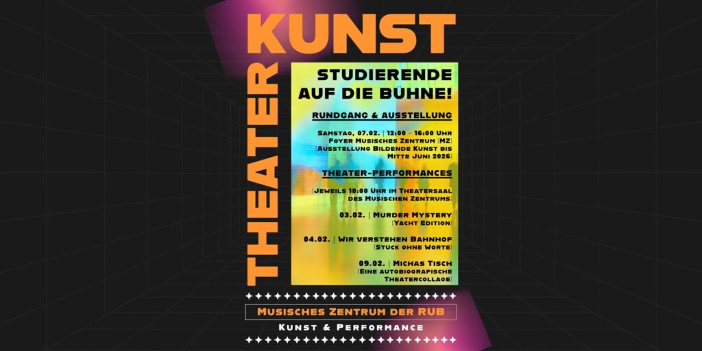 Im Rahmen des Rundgangs im Musischen Zentrum der Ruhr-Universität Bochum am 7. Februar 2026 (von 12 bis 16 Uhr) präsentieren Studierende ihre Arbeiten.