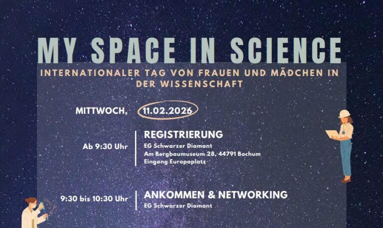 Am Mittwoch, 11. Februar 2026, findet im Deutschen Bergbau-Museum Bochum eine Veranstaltung anlässlich des Internationalen Tages der Frauen und Mädchen in der Wissenschaft statt. Unter dem Titel „My Space in Science“ widmet sich das Programm den Beiträgen von Frauen in Forschung und Wissenschaft sowie ihren Perspektiven auf wissenschaftliche Arbeitsräume, Karrieren