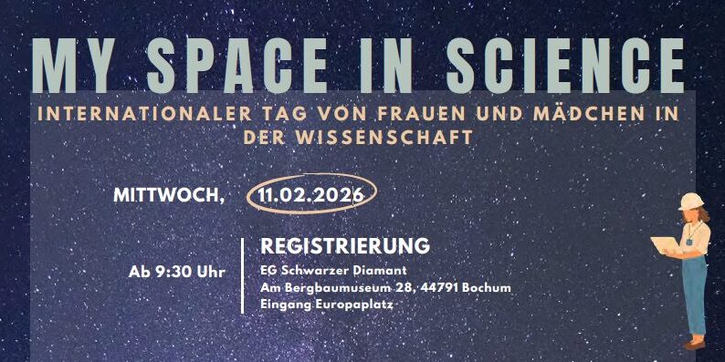 Am Mittwoch, 11. Februar 2026, findet im Deutschen Bergbau-Museum Bochum eine Veranstaltung anlässlich des Internationalen Tages der Frauen und Mädchen in der Wissenschaft statt. Unter dem Titel „My Space in Science“ widmet sich das Programm den Beiträgen von Frauen in Forschung und Wissenschaft sowie ihren Perspektiven auf wissenschaftliche Arbeitsräume, Karrieren und Themen.