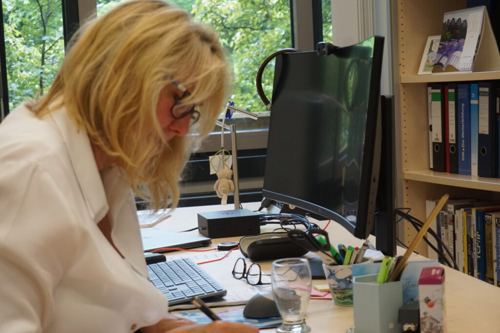 Da eine der Türen offensteht, werfe ich einen erwartungsvollen Blick hinein. Eine kurze gegenseitige Nachfrage und ein Händeschütteln später stelle ich fest, meine Interviewpartnerin gefunden zu haben.